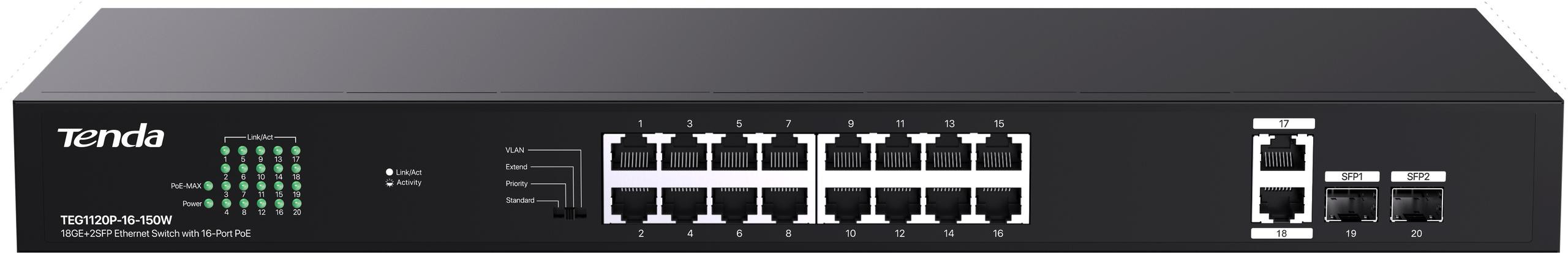 SWITCH POE TENDA TEG1120P-16-150W