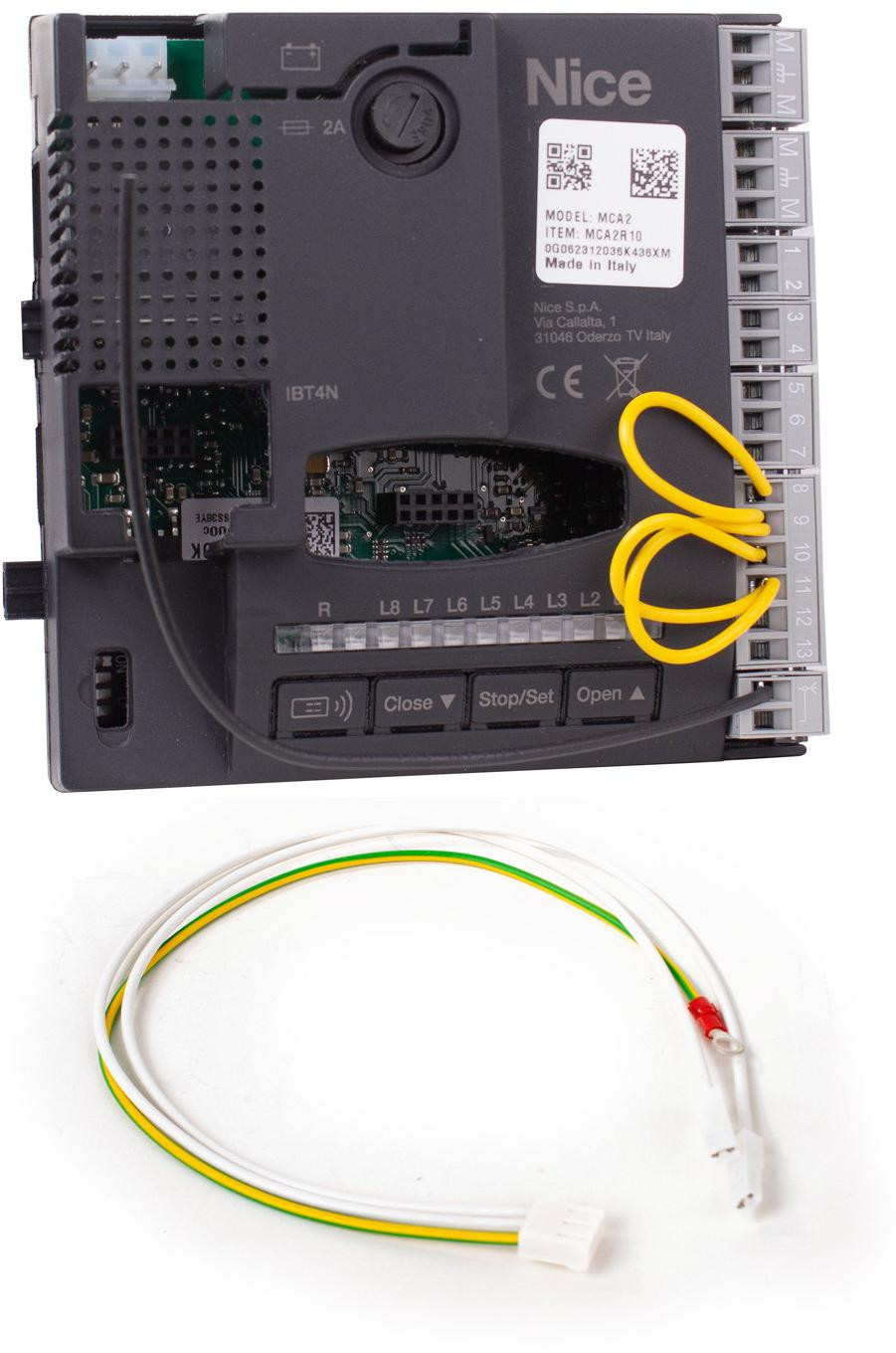 Płyta sterująca MCA2R10 jest częścią kompletnej centrali MC424R10. Jest przeznaczona jest do automatyzacji skrzydłowych bram wjazdowych za pomocą siłowników Nice Wingo 24V. W zestawie znajduje się przewód, pozwalający na podłączenie centrali MCA2R10 do siłowników ze starszą centralą MCA2.
