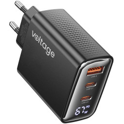 Ładowarka sieciowa Voltage GaN Charger 67W PD 3.0 QC 4.0 USB-A 2x USB-C Digital Display czarna