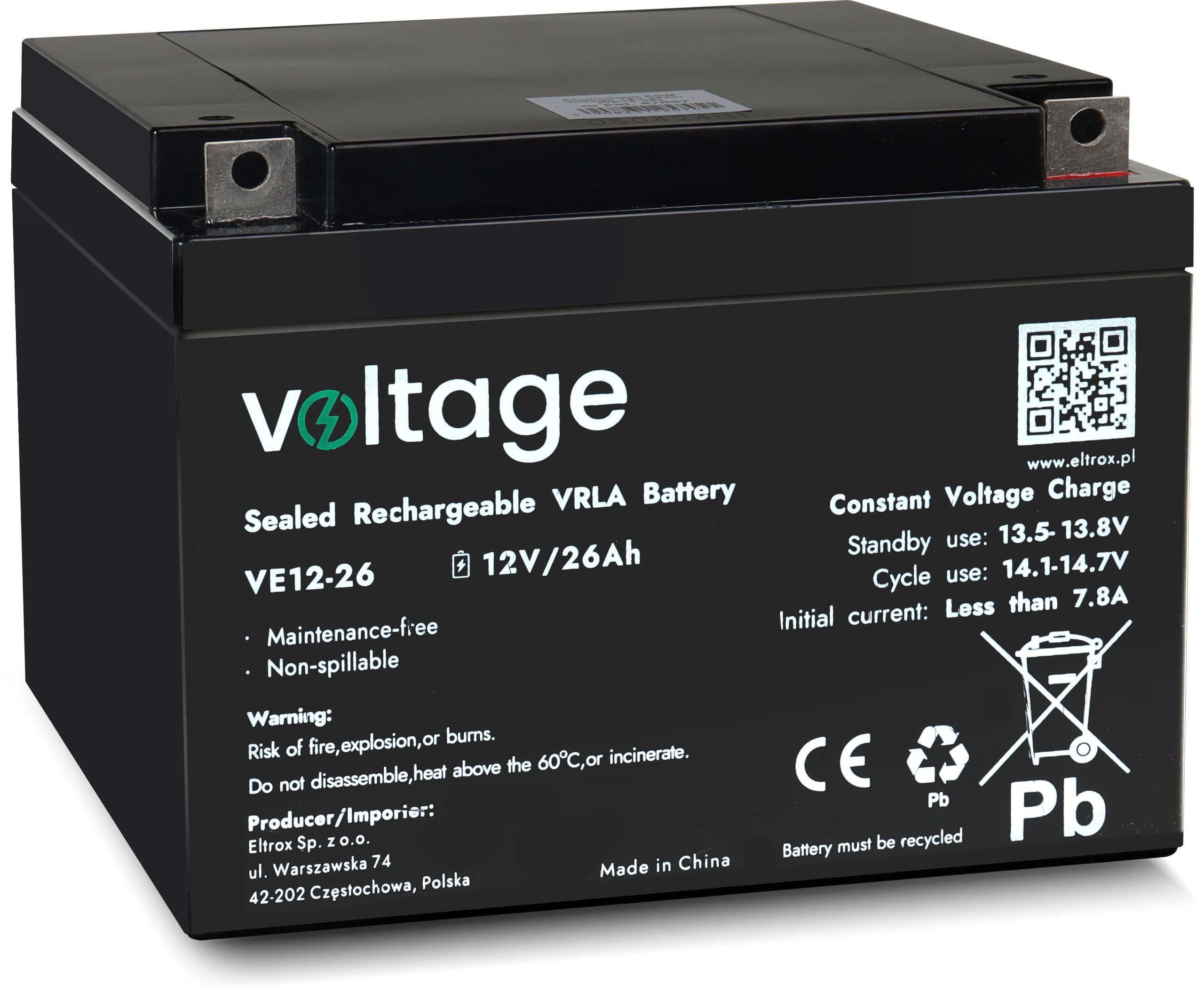 Akumulator AGM Voltage 12V 26Ah VE12-26 (Żywotność 6-9 lat) - najważniejsze cechy: