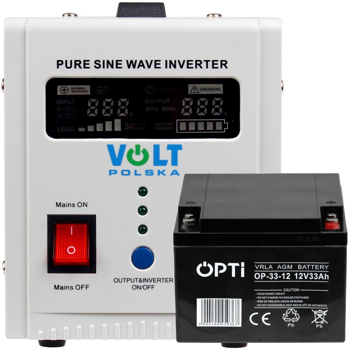 Zestaw do awaryjnego zasilania 33Ah 800W, składający się z akumulatora VOLT POLSKA 12V 33Ah z serii OPTI oraz przetwornicy 12V 500/800W to kompletny zestaw zasilania awaryjnego!