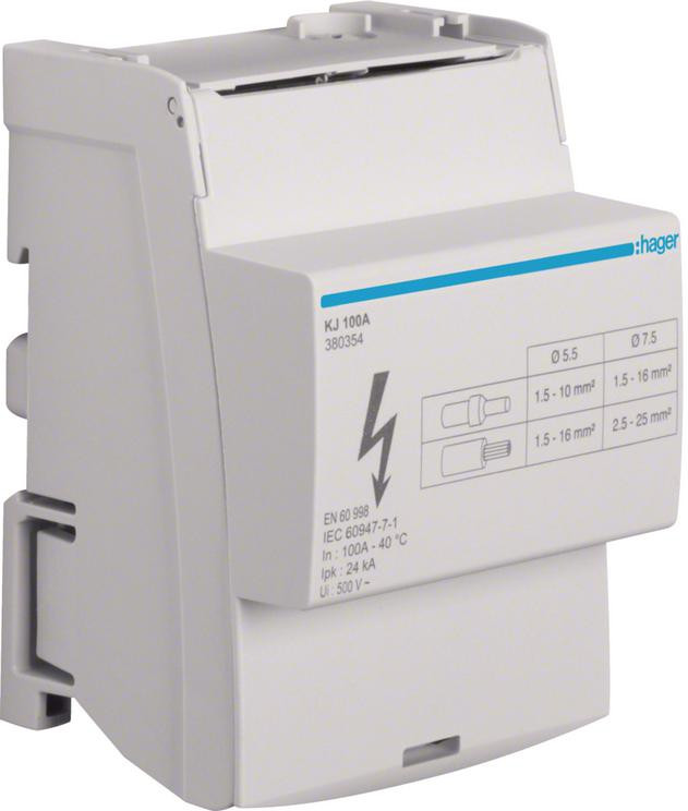 Blok rozdzielczy 4-biegunowy In=100 A Hager KJ100A