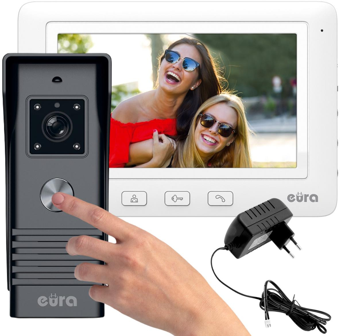 • Wyposażona w daszek ochronny kaseta zewnętrzna zestawu (bramofon) - EURA VDA-78A3 - o współczynniku ochrony IP44 umożliwia prawidłową pracę wideodomofonu nawet w trudnych warunkach atmosferycznych. Wysokiej jakości kamera wbudowana w bramofon zapewnia doskonałe parametry obrazu, również w nocy - dzięki 4 diodom LED umożliwiającym podgląd otoczenia kasety zewnętrznej przy niedostatecznym nawet natężeniu oświetlenia!