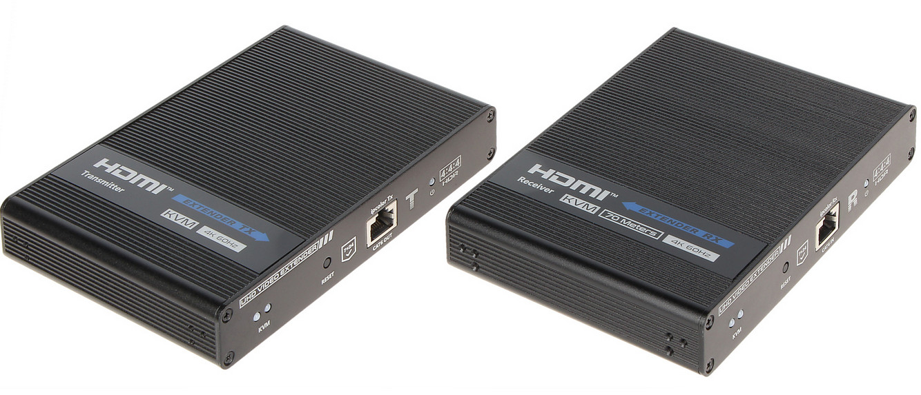 - Maksymalny zasięg transmisji: 70 m UTP kat. 6 @ 4K UHD, 70 m UTP kat. 5, 5e @ 1080p, 50 m UTP kat. 5e @ 4K UHD (nasze testy)