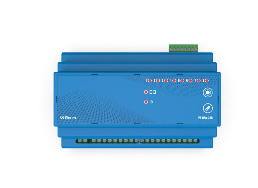 PS-08m 230 jest urządzeniem, które dedykowane jest wszystkim tym, którzy lubią mieć wszystko poukładane w jednym miejscu - np. w szafie rozdzielczej. PS-08m 230 ma 8 przekaźników - wyjść napięciowych 230V i montuje się go na szynie TH35 podłączając do niego obwody, urządzenia bezpośrednio za wyjściem z bezpiecznika. Istnieje możliwość podłączenia do 8 urządzeń. PS-08m 230 komunikuje się z centralką Sinum przewodowo przez magistralę TECH SBUS. Po podłączeniu PS-08m 230 otrzymamy możliwość niezależnego sterowania danym punktem zasilania/oświetlenia zarówno przy pomocy aplikacji mobilnej jak również manualnie poprzez włącznik ścienny. Po dodaniu i zaprogramowaniu PS-08m 230 w centrali Sinum istnieje możliwość zdalnego sterowania, dodawania scen, akcji oraz ustawienia harmonogramów.
